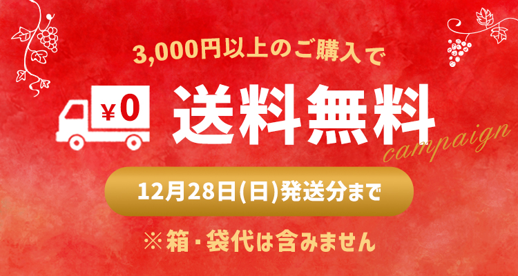 2025年11月1日(日)発送分から2025年12月28日(日)分まで、商品3,000円以上(税込・割引後・箱代は含みません)お買い上げで送料無料となります。